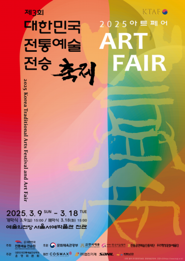 3월 9일부터 3월 18일까지 서울 서초구 예술의전당 서예박물관 제2전시실에서 ‘2025 대한민국 전통예술 전승축제 아트페어’가 열린다. 이 행사에서는 한국 전통문화의 아름다움을 재조명하고 전통과 현대의 예술적 융합을 시도할 예정이다.이번 아트페어는 대한민국전통예술전승…