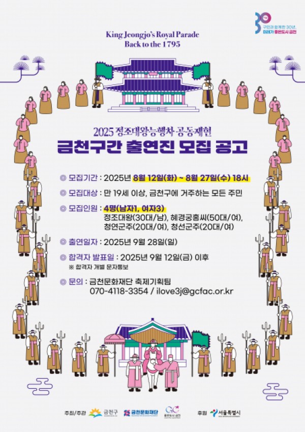 금천문화재단 ‘2025 정조대왕 능행차 재현’ 배역 맡을 금천구민 공개 모집