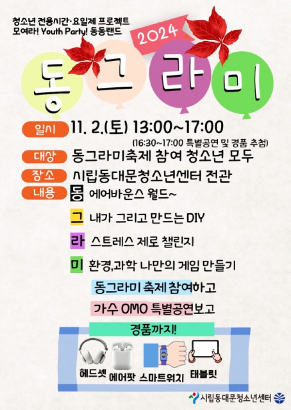 시립동대문청소년센터, 2024년 청소년축제 ‘동그라미 in 가을’ 개최