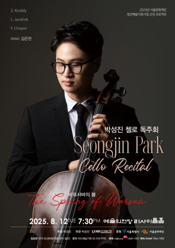 충북도립교향악단 수석 단원으로 활동하고 있는 첼리스트 박성진이 8월 12일(화) 오후 7시 30분 예술의전당 리사이틀홀에서 독주회 ‘바르샤바의 봄’을 개최한다.이번 공연은 2025년 서울문화재단 청년예술지원사업에 선정된 프로젝트로, 격동의 시대 속 조국의 역사와 민족적…