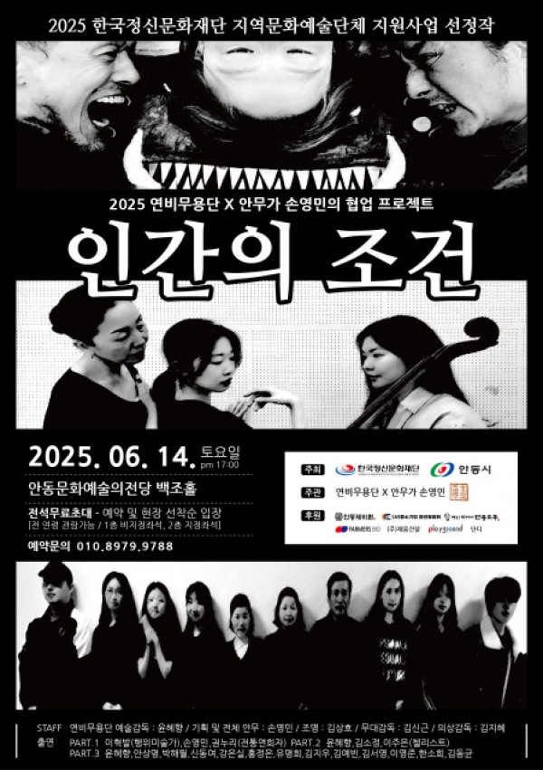 안동을 기반으로 활동하는 연비무용단과 국내외에서 왕성하게 활동한 후 안동에 정착한 안무가 손영민이 함께하는 특별한 협업 프로젝트 ‘인간의 조건’이 6월 14일 안동문화예술의전당 백조홀에서 관객들을 만난다.이번 공연은 한국정신문화재단 2025 지역문화예술단체 지원사업 선…