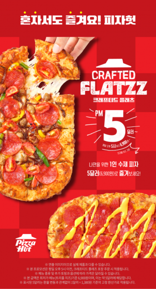 피자헛, 1인 피자 ‘크래프티드 플래츠’ 출시 기념 프로모션 진행