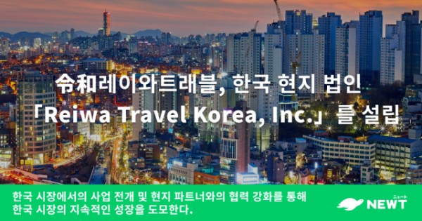 똑똑하고 이득인 여행 앱 ‘NEWT(뉴트)’를 운영하는 레이와트래블(본사: 도쿄도 시부야구, 대표: 시노즈카 타카야)이 한국 시장에서 본격적으로 사업을 전개하고 현지 파트너와의 협력을 강화하기 위해 대한민국 서울특별시에 100% 출자한 자회사 ‘Reiwa Travel …