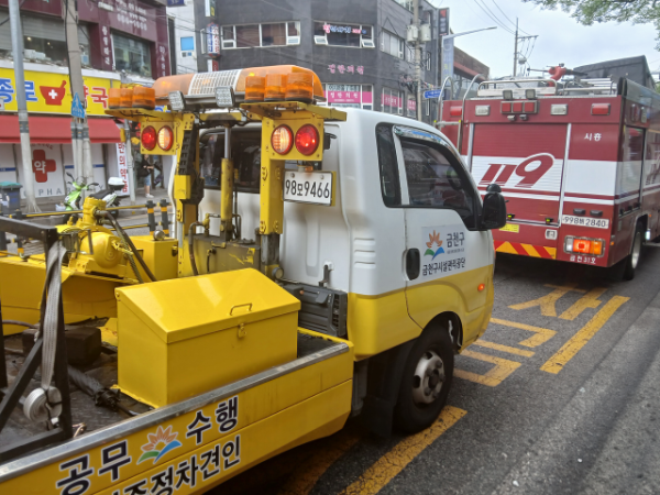 금천구시설관리공단, 전통시장 소방차 통로 확보 합동훈련 실시